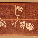Marquetry in maple, sapele, walnut, and cascara woods.